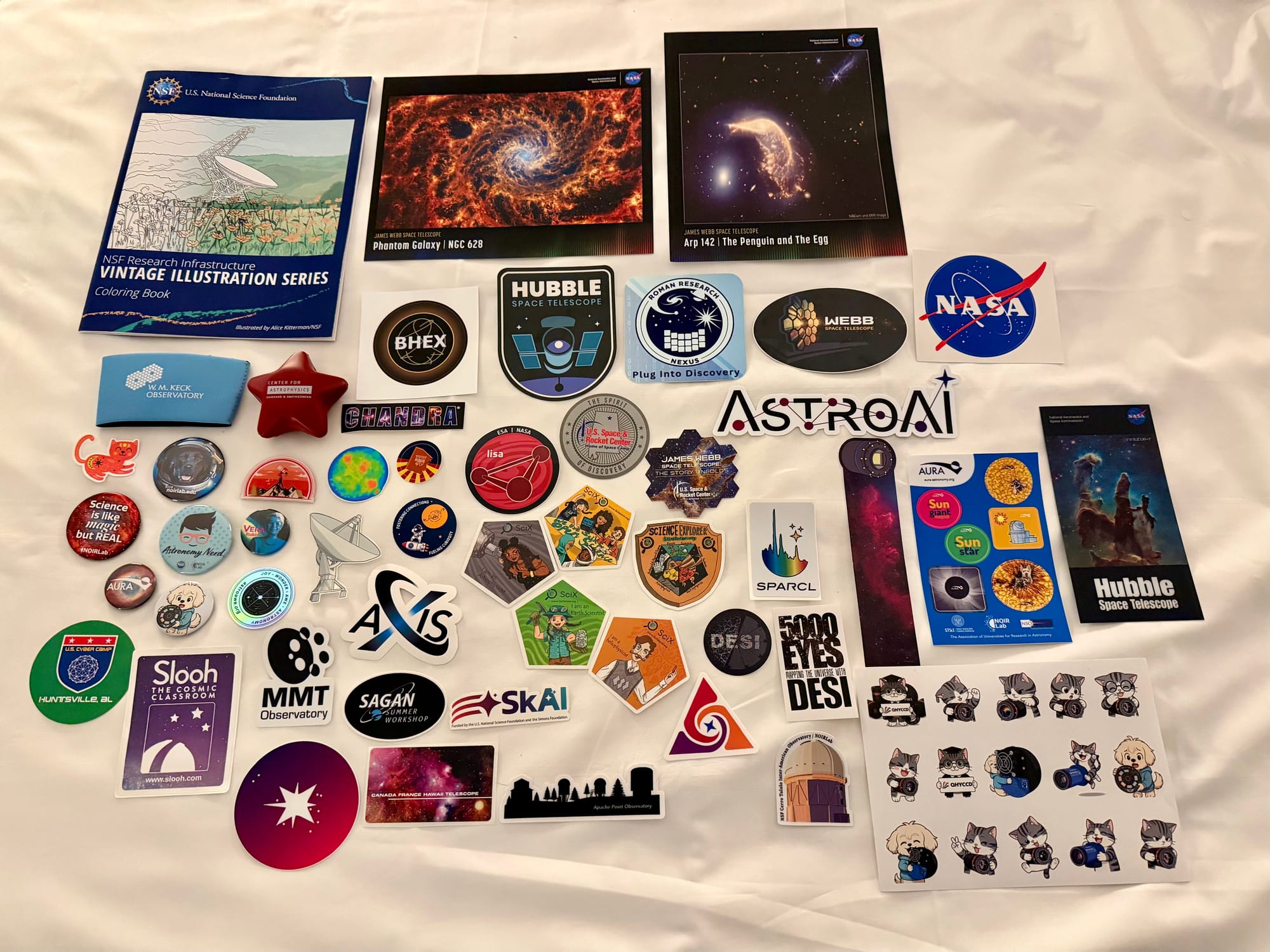 The more fun part of the conference (for me) was the swag. Apparently, astronomers are big on stickers and pins. Some of them, including NSF, had coloring books too. I loaded up on the stickers and pins and got a few for my son, who is starting to get interested in physics and astronomy for some reason.