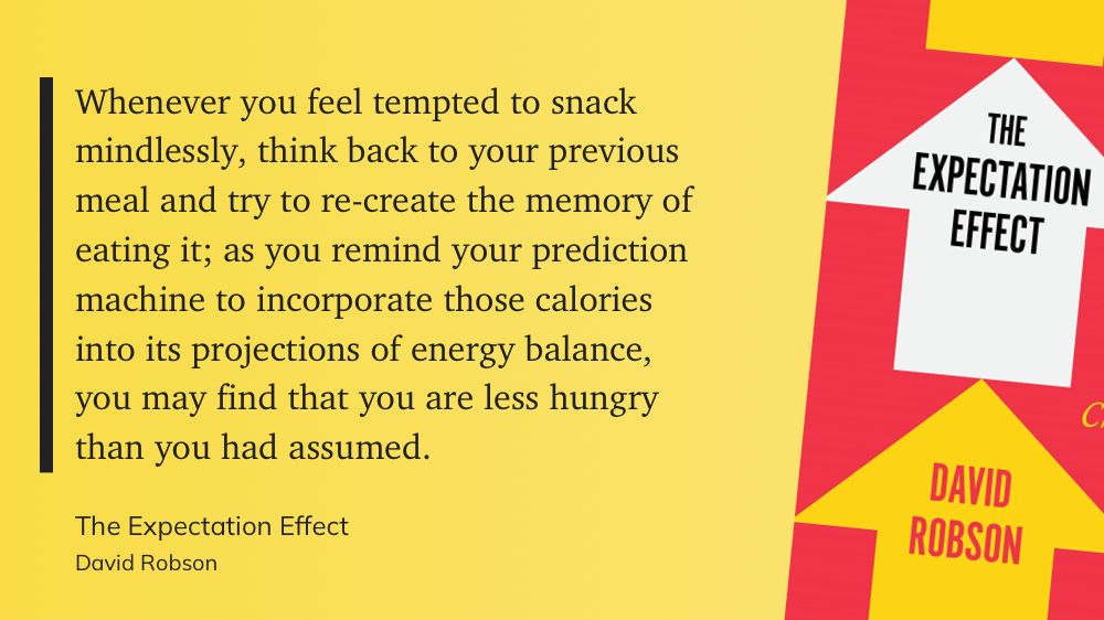 The above excerpt gave me an idea to tweak how I do my food log. Right now, I simply write down (by hand) what I eat during the day. No calorie count or anything fancy. Just a word or two e.g. coffee (black), biryani + raita, etc. Chances are that I won’t ever look at this log again. But as the author says, simply reflecting on the food you ate will influence what and how much you will eat next regardless of your hunger level.